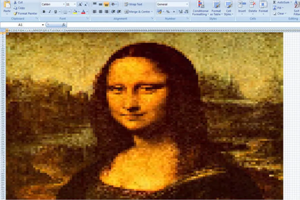 Man glaube es kaum. Sogar die sagenumwobene Mona Lisa wirkt auf Exel fast, als wäre sie von Lenoardo da Vincis hingepinselt worden. Der Flickr-Nutzer Amit Agarwal gab jedoch zu, eine Excel-Software zu nutzen, die aus Bildern solche Pixelkunst überhaupt erst ermöglichen soll.