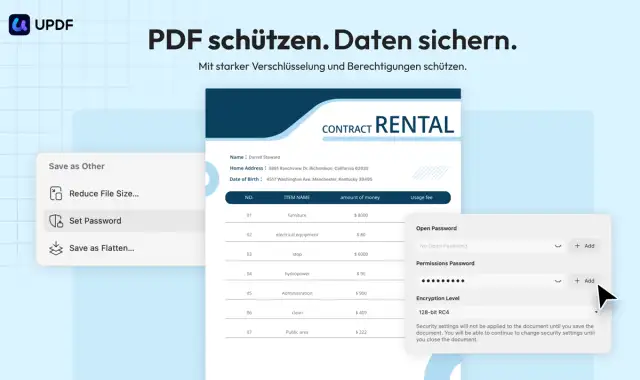 Datenschutz ist entscheidend. UPDF hilft beim Schutz sensibler Dateien und verfügt ausserdem über robuste Verschlüsselungsfunktionen. Ausserdem bietet es eine Passwortfunktion, mit der Sie all Ihre Dateien vor unbefugtem Zugriff schützen.