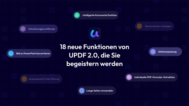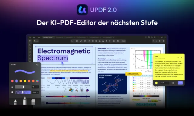 Die Version 2.0 von UPDF bietet ab sofort zudem eine Menge neuer Funktionen, was diesen AI PDF-Editor zum intelligentesten, schnellsten und sichersten Tool macht, Ihre PDFs effizient zu verwalten und zu bearbeiten.