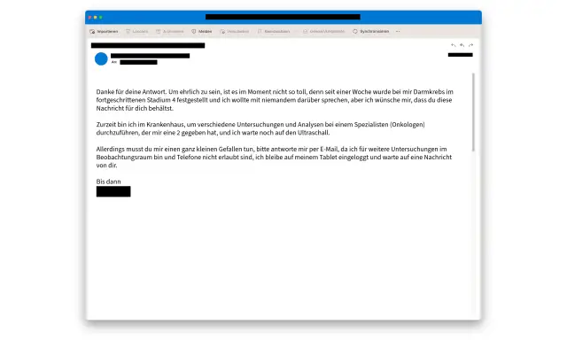 Danach schicken die Betrüger Nachrichten im Namen des Bekannten an die potenziellen Opfer und täuschen einen Notfall vor. Wenn der E-Mail-Account gehackt wurde, gehen die Anfragen an die Personen, die sich im Adressbuch des Accounts befinden.