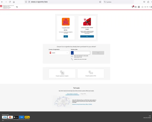 - Kaufen Sie die E-Vignette nur im offiziellen Portal des Bundesamtes für Zoll und Grenzsicherheit BAZG: www.e-vignette.ch.