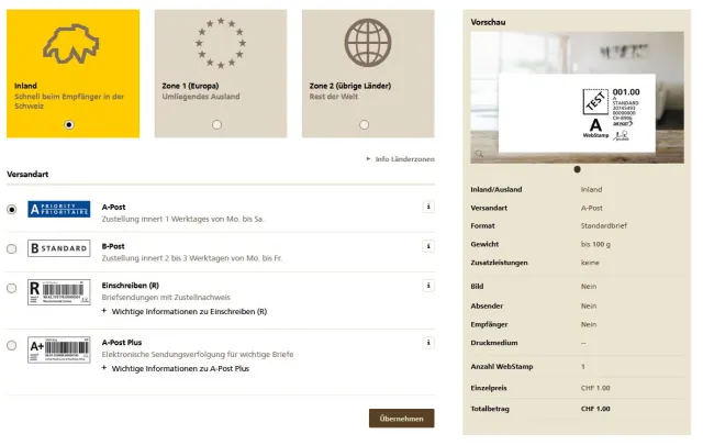 Die neue Preisstruktur hat aber unter anderem Auswirkungen auf WebStamps – und die Art und Weise irritiert mich. Mit WebStamp können Sie individuelle Briefmarken nach eigenen Ideen und Vorstellungen online gestalten. Zunächst das Positive: Wer noch dieses Jahr WebStamps erstellt, darf diese auch ab 1. Januar 2022 verwenden. Doch nun kommts: Kundinnen und Kunden müssen den fehlenden Wert mit einer – physischen! – Briefmarke oder am Schalter nachfrankieren.