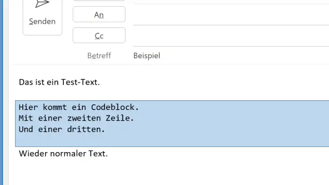 Müssen Sie hie und da via Outlook Code-Schnipsel oder Konsolenfenster-Eingaben versenden? Benutzen Sie für solche Code-Darstellung oder andere spezielle Textauszeichnungen die Formatvorlagen.