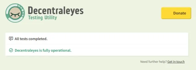 Das muss aber nicht sein. Sie können die Bibliotheken auch einfach lokal zwischenspeichern und von dort laden lassen. Das schützt nicht nur Ihre Privatsphäre, sondern spart auch Zeit und Bandbreite. Nach der Installation ist Decentraleyes sofort aktiv. Sie müssen nichts einstellen, können die korrekte Funktion des Add-ons aber unter der Webadresse decentraleyes.org/test prüfen, Bild 5.