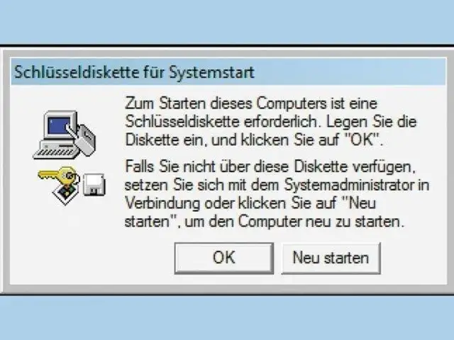 Das Windows-eigene Programm Syskey.exe bietet die Option, eine Schlüsseldatei für den Systemstart auf Diskette zu speichern. Bei jedem Start muss diese Diskette im Laufwerk liegen, sonst kann Windows die Kennwort-Datenbank nicht entschlüsseln. Wenn Ihr PC aber gar kein Diskettenlaufwerk A: hat, lässt sich Syskey nicht mehr abbrechen – und Sie kommen nicht mehr an Ihr System.
