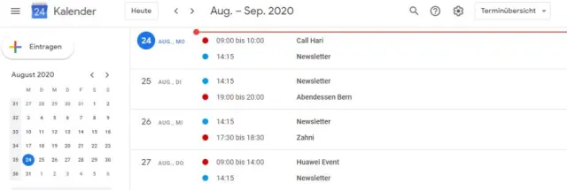 Leute mit besonders vielen Terminen wissen die Terminübersicht vielleicht eher zu schätzen als die normale Kalenderansicht. Klicken Sie auf das Dropdown-Menü oben links und wählen Sie Terminübersicht.