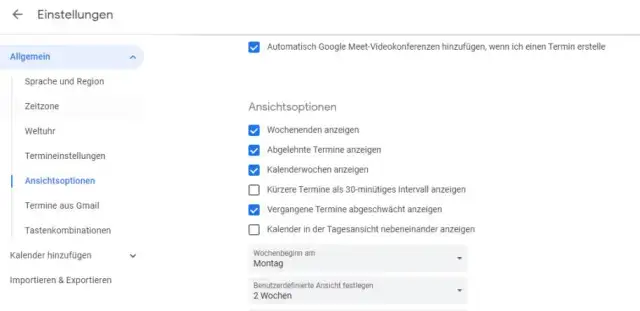 Bleibt das Wochenende terminfrei? Klicken Sie wieder auf Einstellungen und Ansichtsoptionen. Entfernen Sie den Haken bei Wochenenden anzeigen.
