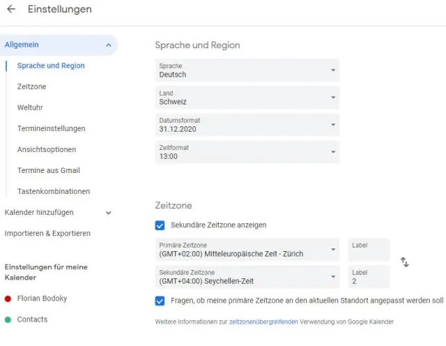 Wenn Sie beispielsweise mit Kollegen in anderen Zeitzonen zusammenarbeiten, können Sie sich bei Terminen die Uhrzeiten der eigenen und der anderen Zeitzone anzeigen lassen. Klicken Sie auf Einstellungen, danach aktivieren Sie den Haken unter Zeitzone beim Punkt Sekundäre Zeitzone anzeigen. Im Dropdown-Fenster wählen Sie nun die gewünschte Zone an.