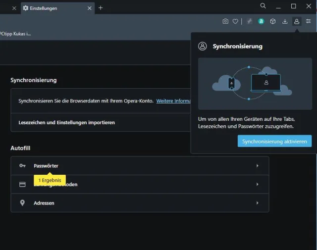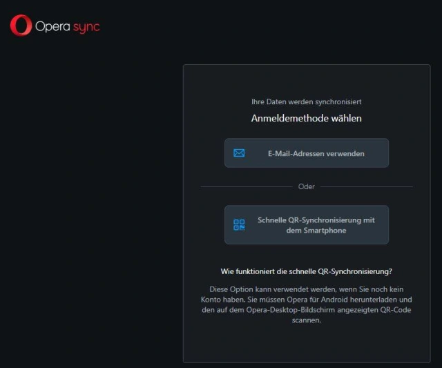 Die möglichen Anmeldeoptionen in Opera (hier im Desktop-Webbrowser)