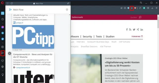 Quelle: Screenshot/PCtipp.chWie Sie die Nachrichten in der Seitenleiste anzeigen lassen, ist in diesem Tipp erläutert.