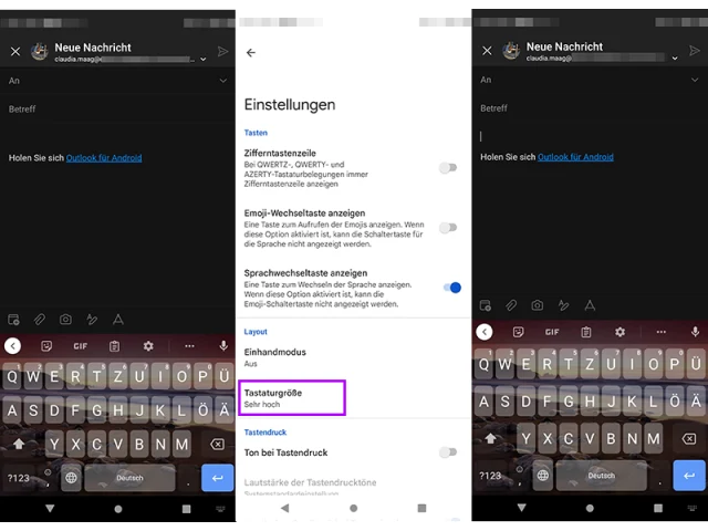 - Hier finden Sie Tastaturgrösse.