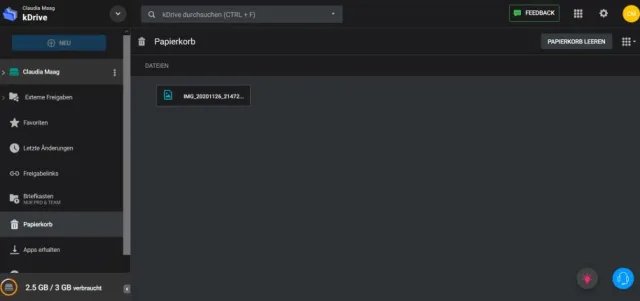 Nachdem Sie Dateien dorthin verschoben haben, sollten Sie den Papierkorb zuerst leeren, bevor Sie neue Dateien bzw. Ordner hochladen wollen. Lesen Sie bei Tipp 2 weiter.