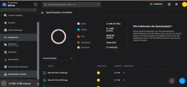 Um zu sehen, wie viel Speicherplatz Sie noch zur Verfügung haben bzw. wie Sie Ihren verwenden, scrollen Sie in der linken Menüspalte etwas nach unten. Zuunterst finden Sie Speicherplatz verwalten.