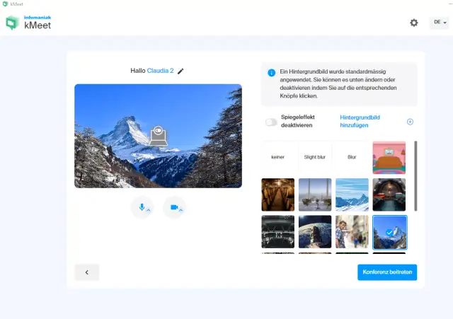 Wenn Sie ein neues Meeting starten, können Sie direkt einen Hintergrund wählen. Es wird standardmässig ein Hintergrund verwendet, doch rechts erhalten Sie eine Auswahl angeboten. Klicken Sie auf einen Hintergrund und anschliessend auf Konferenz beitreten. Sie können auch ein eigenes Foto als Hintergrund hinzufügen.Zusatztipp: Direkt hier können Sie den Spiegeleffekt per Schieberegler deaktivieren.