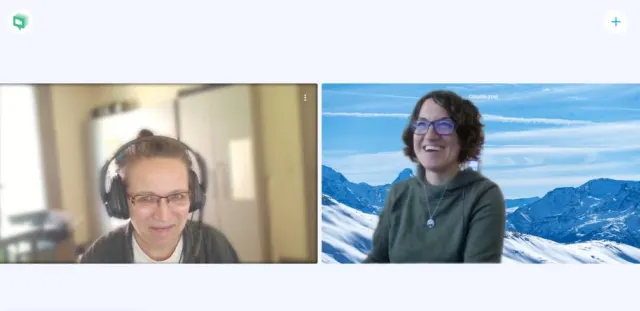 Wie erwähnt, ist die Grundansicht der App fast puristisch (jedoch sehr bunt) gehalten. Das heisst jedoch nicht, dass Sie während eines Videocalls keine Optionen hätten.Ist das Meeting gestartet, sehen Sie unten auf dem Handy-Bildschirm nicht nur die Symbole für das Mikro oder die Kamera. Sie können dort auch direkt einen Chat öffnen sowie eine Umfrage erstellen.