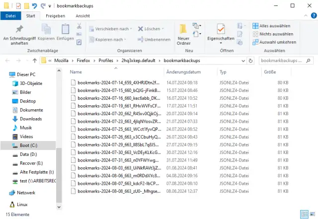 Bild 4: Firefox speichert bis zu 15 Sicherheitskopien Ihrer Lesezeichen in Ihrem Profilordner