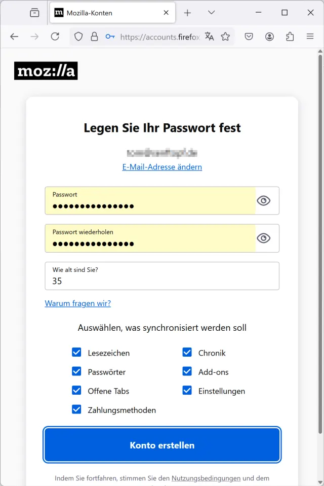 Bild 7: Zum Synchronisieren brauchts ein Firefox-Konto