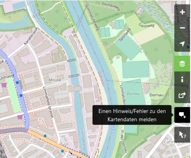 In der Menüleiste rechts finden Sie beim zweitletzten Icon ein Sprechblasen-Symbol. Dies dient dazu, einen Hinweis oder Fehler zu melden.