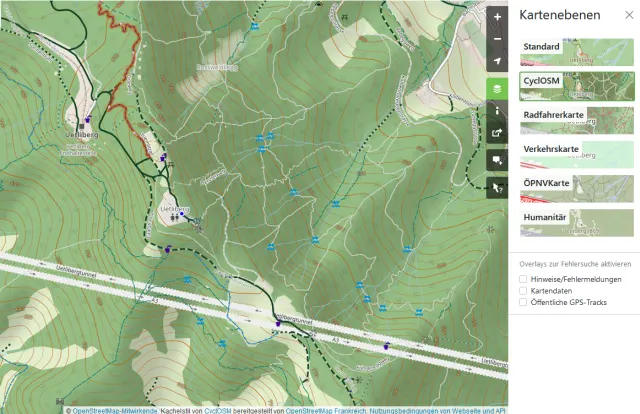 OSM Kartenebenen CyclOSM, Ansicht Uetliberg