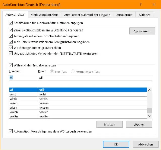 Quelle: PCtipp.ch«Wil» wird zu «will»: Es gibt in der Schweiz mindestens zwei Ortschaften namens «Wil». Word weiss das nicht und ersetzt die Zeichenfolge «Wil» hartnäckig durch «will». Das ist zum Glück nur ein AutoKorrektur-Eintrag. Öffnen Sie Datei/Optionen/Dokumentprüfung und klicken Sie auf AutoKorrektur-Optionen. Gleich im Reiter AutoKorrektur finden Sie unten eine Liste mit Wörtern, die Word ohne Rückfrage draufloskorrigiert. Scrollen Sie fast ganz herunter, bis Sie zum Eintrag «wil/will» stossen. Klicken Sie ihn an, gefolgt von Löschen.