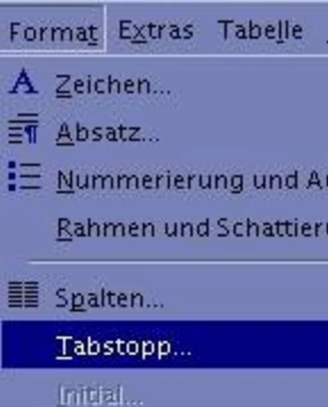 Öffnen Sie das Menü FORMAT/TABSTOPP... (In früheren Word-Versionen FORMAT/TABULATOR)