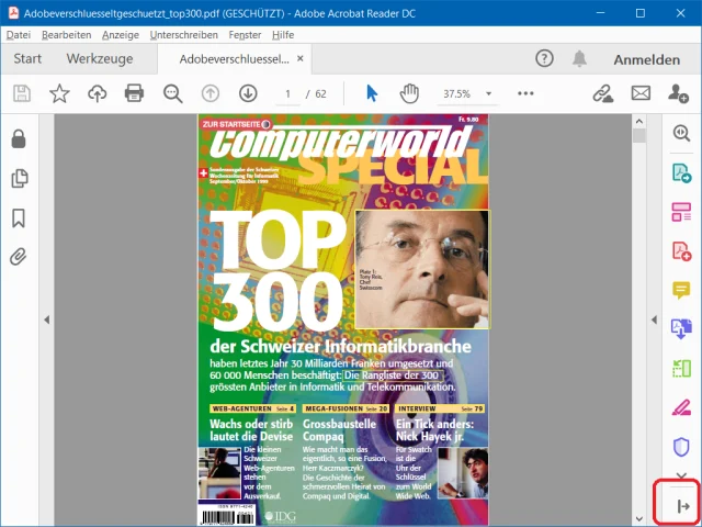 Lösung: Adobe hat im PDF-Anzeigeprogramm Adobe Acrobat Reader DC vor ein paar Jahren ein paar gewöhnungsbedürftige Änderungen an der Bedienoberfläche vorgenommen. Wenn Sie eine PDF-Datei öffnen, zeigt er rechts neben dem Dokument immer auch eine recht breite Werkzeugleiste an. Die meisten Anwender brauchen aber keine Werkzeuge, sondern benutzen Adobes PDF-Reader nur fürs Lesen und allenfalls Drucken von PDFs. Sie können die Leiste von Fall zu Fall ausblenden oder auch dauerhaft loswerden.
