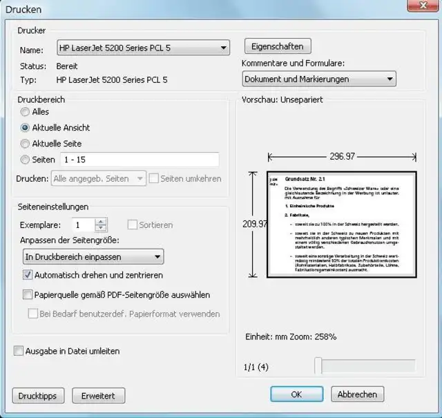 Adobe Reader: PDF-Ausschnitt gezoomt ausdrucken