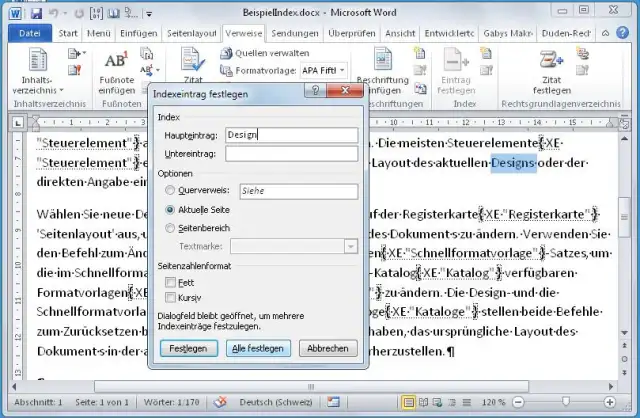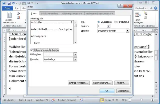 Alphabetisches Inhaltsverzeichnis in Word 2010