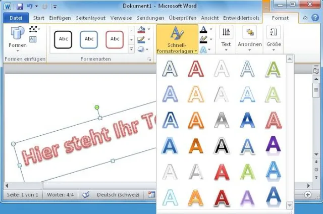 Quelle: PCtipp.chFalls Sie in Word 2010 trotzdem noch neue WordArt-Objekte nach altem Schema erstellen wollen, gehen Sie zu Datei/Speichern unter und wählen beim «Dateityp» das alte Format «Word 97-2003-Dokument *.doc» aus. Nach dem Speichern steht im Reiter Einfügen wieder die althergebrachte WordArt-Funktion zur Verfügung.