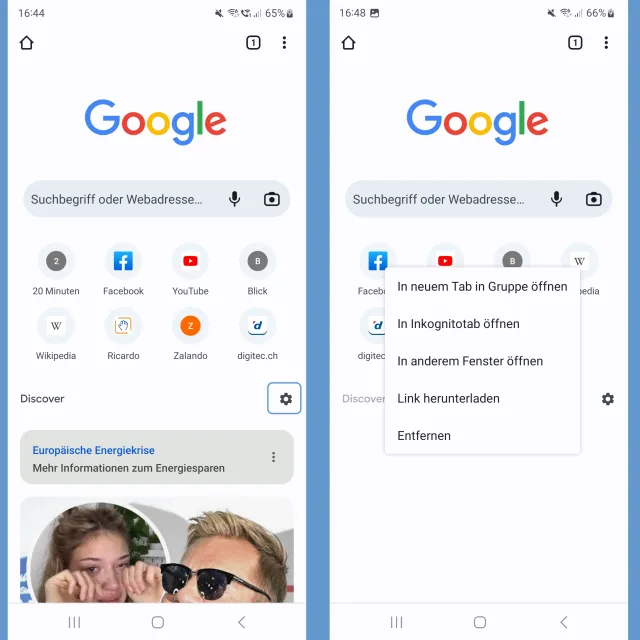 Android: Google Chrome-Startseite entrümpeln