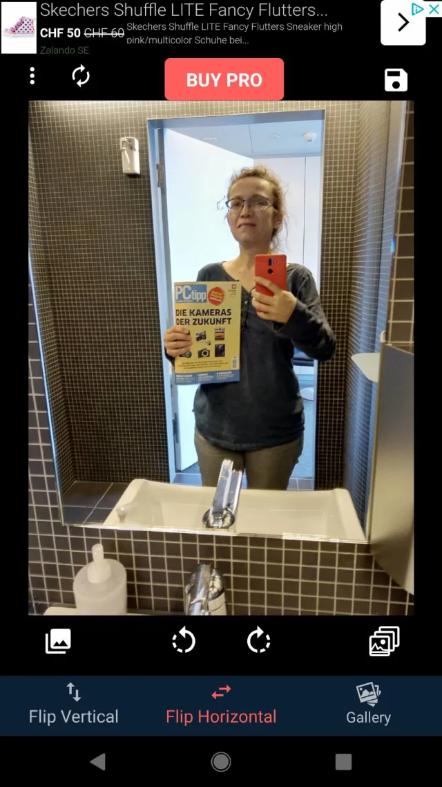 Haben Sie Googles Bild-Editor-App Snapseed zufälligerweise schon installiert? Diese App ist weitgehend werbefrei, kostenlos, kann Fotos spiegeln und bietet noch weitere Bearbeitungsmöglichkeiten.