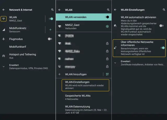 Via Netzwerk-Einstellungen/WLAN/WLAN-Einstellungen gelangen Sie zum gesuchten Schalter