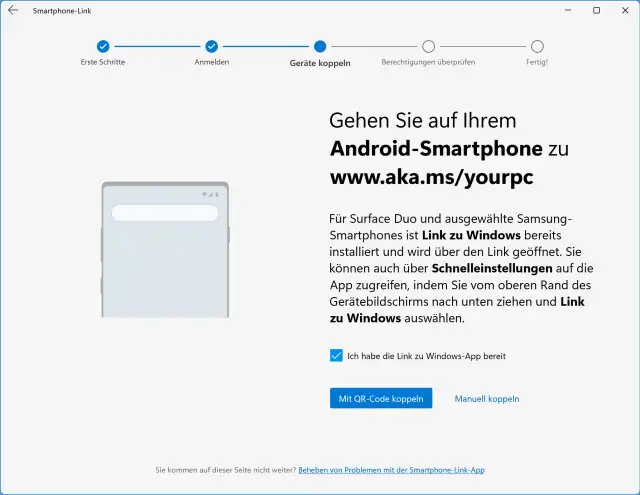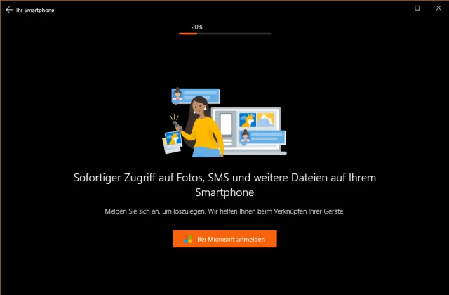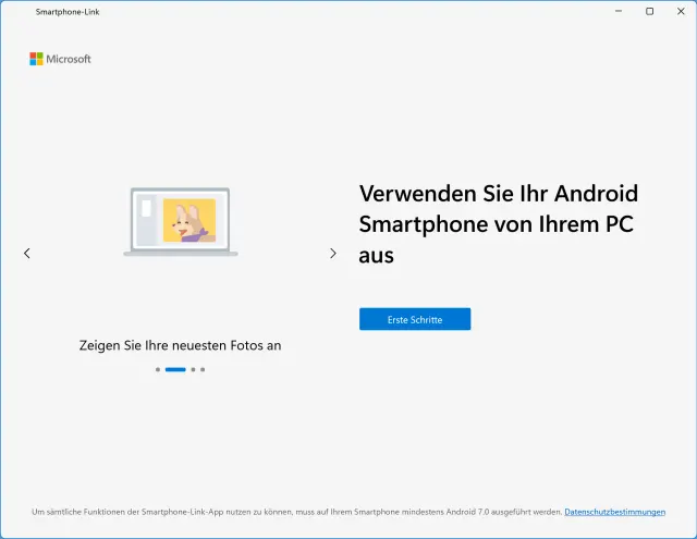 Die Windows-App Smartphone-Link begrüsst Sie mit einem einfach zu meisternden Einrichtungsvorgang