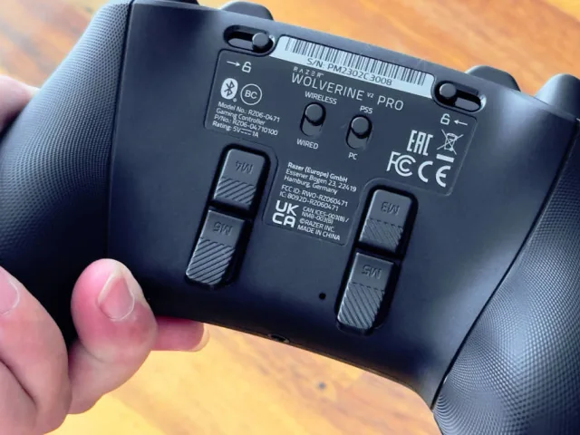 Kein Turnier-Controller kommt wohl darum herum, sich vom Xbox-Elite-Controller von Microsoft «inspirieren» zu lassen – und deshalb bietet auch der Wolverine auf der Rückseite zwei Tasten und zwei Paddles, die sich über die App für iOS und Android belegen lassen.