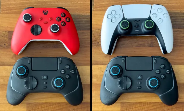Für PS5 und PC (umschaltbar), USB-C fürs Aufladen, Funk-Dongle für die Konsole, 2 Paddles und zwei zusätzliche Tasten auf der Rückseite, 2 zusätzliche Trigger, Tasten anpassbar mit der kostenlosen App für iOS und Android. Preis im Online-Handel ca. 230 Franken.