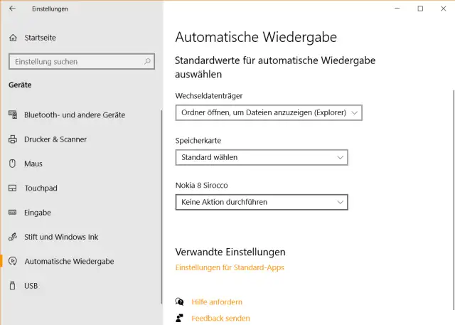 Hier finden Sie die Wiedergabeeinstellungen, die festlegen, was Windows tun soll, wenn Sie bestimmte Geräte anstöpseln