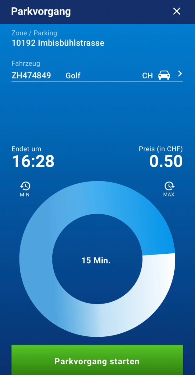 Keine Möglichkeit zur Verlängerung nach dem Start des Parkvorgangs und keine Push-Benachrichtigung nach Ablauf.