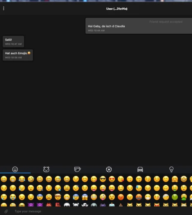 Ist dies einmal gelungen, kann man sich Nachrichten schreiben. Wie von anderen Messengern gewohnt, können Sie Emojis verschicken.