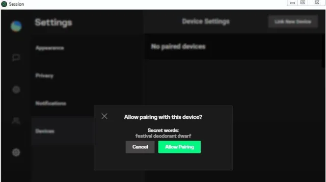 - Auf dem Desktop gehen Sie via Einstellungen zu Devices. Klicken Sie auf Link New Device. Ein QR-Code erscheint. Damit pairen Sie Ihr Handy mit der Desktop-Version.