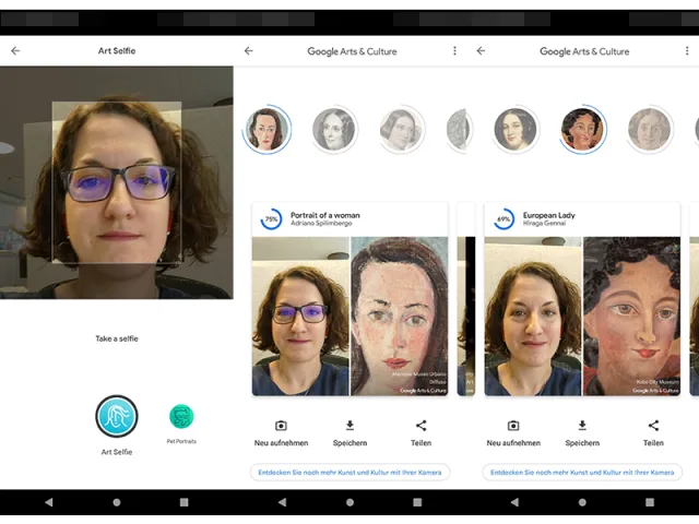 Quelle: Screenshots/PCtipp.chBei unserem Selbstversuch brauchten die Vorschläge teilweise ein wenig Fantasie. Laut Google werden die Selfies zwar auf den Server hochgeladen, aber nur für die Dauer der Art-Selfie-Abgleichung. Laut einem englischsprachigen Blogeintrag werden die Bilder für nichts anderes genutzt. Die Google-Arts-&-Culture-App ist kostenlos sowohl für Android als auch iOS verfügbar.