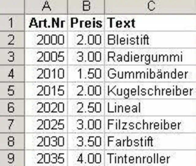 Dies ist ganz klar wieder mal ein Fall für die Funktion SVERWEIS. Sie haben eine Artikelliste, in der sich alle erforderlichen Informationen befinden.