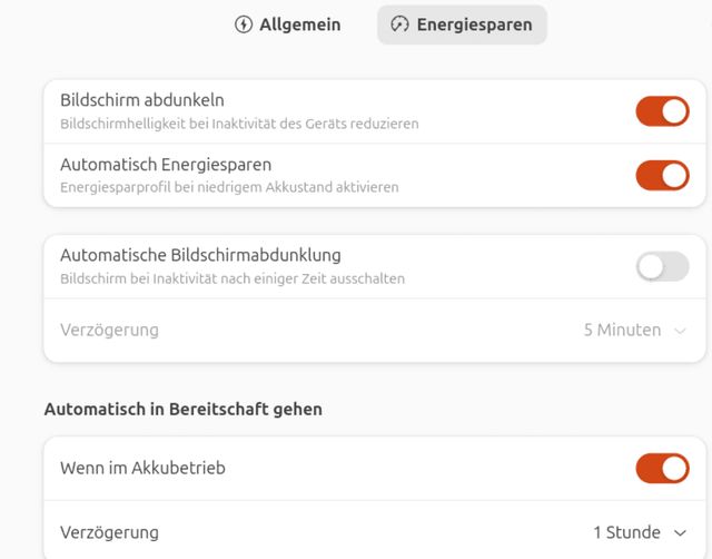 Energiesparen ist wichtig. Die automatische Bildschirmabdunklung greift standardmässig aber bereits nach fünf Minuten