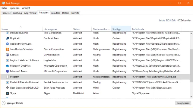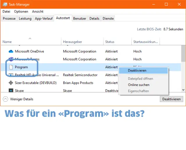 Was soll der Autostart-Eintrag «Program» im Task-Manager?