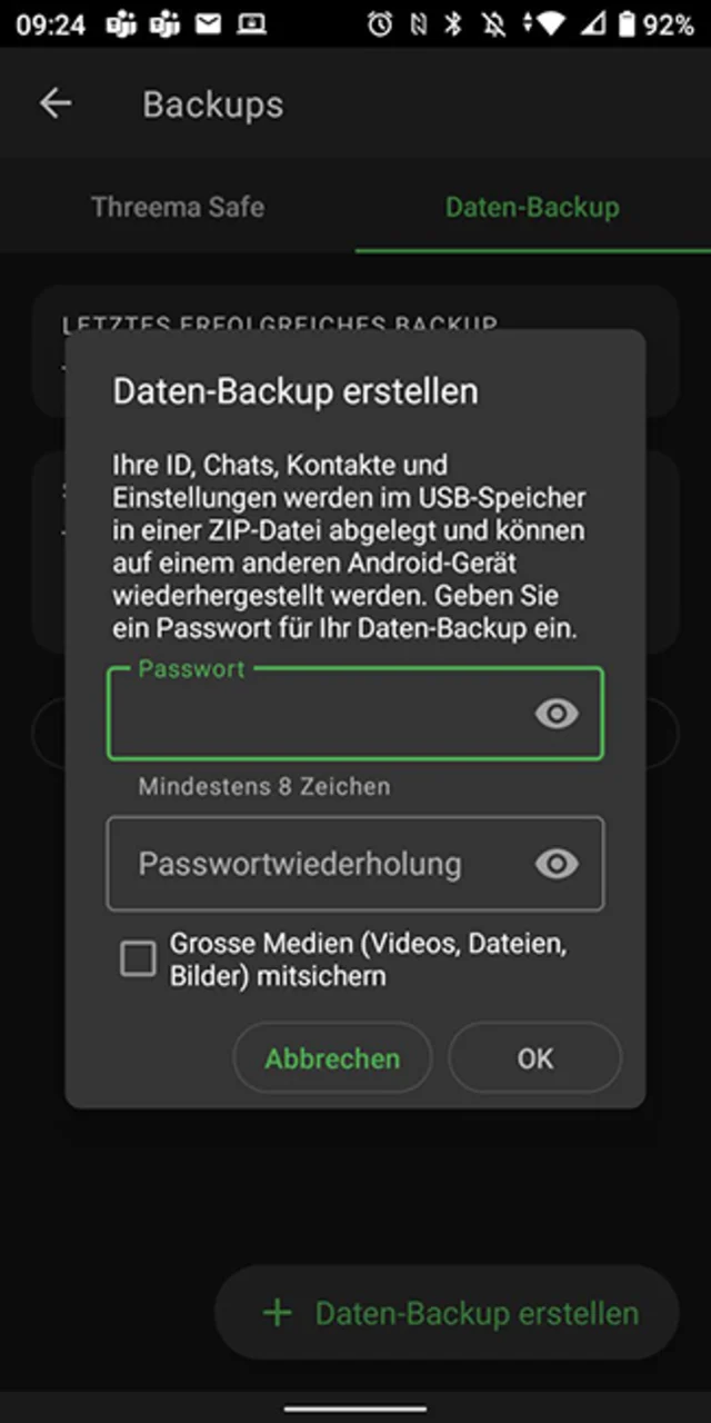 Datenbackup in Threema Android
