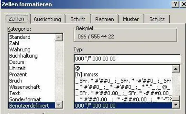 Benutzerdefiniertes Format für Telefonnummer