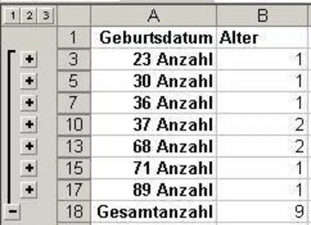 Berechnung des Alters und in Gruppen zusammenfassen - Excel