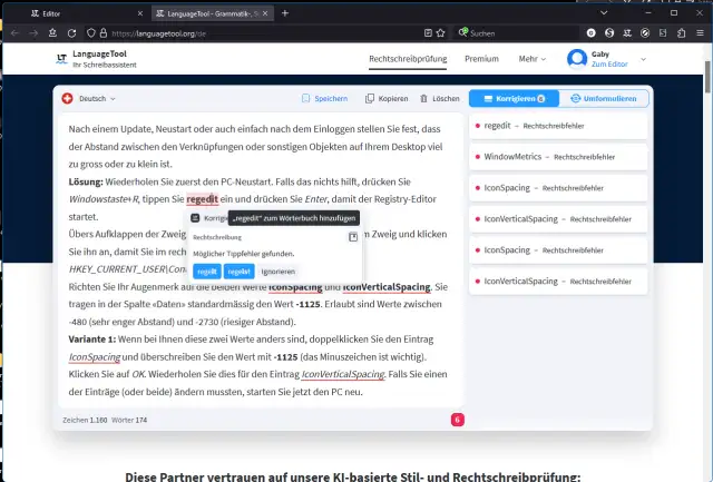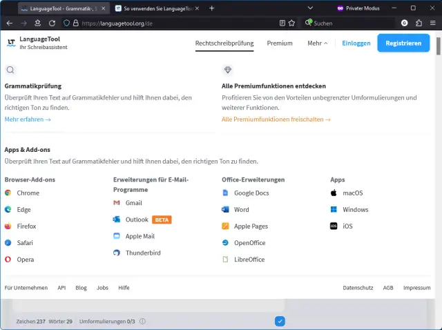 - direkt im Webbrowserfenster über den Link languagetool.org