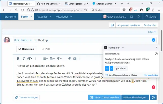Bild 6: In diesem Firefox-Webbrowser ist direkt das LanguageTool-Add-on am Werk