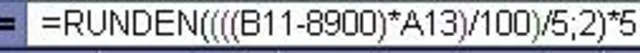 Nun setzen Sie den Cursor nochmals ganz ans Ende der Formel in der Formelzeile und hängen zum Abschluss noch den Teil "*5" hinten an die Formel