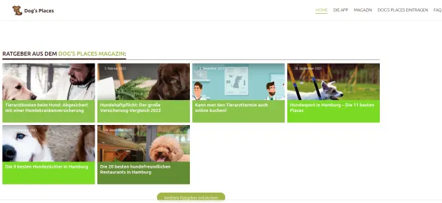 Ratgeber des Dog's Places Magazins auf der Webseite (Stand: 25.05.22)